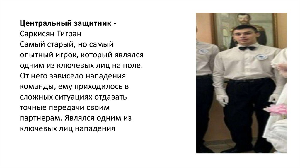Центральный защитник Саркисян ТигранСамый старый, но самый
