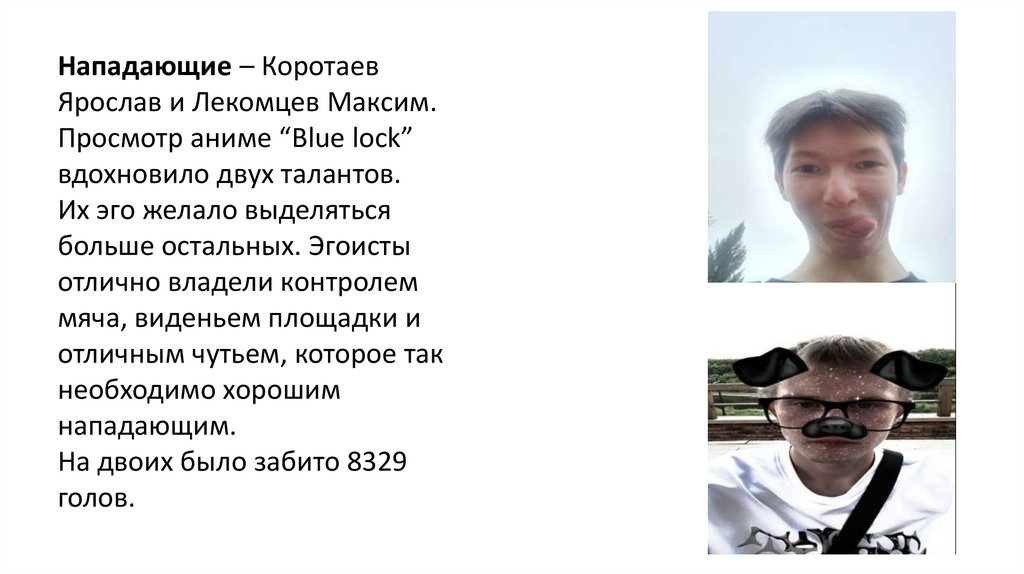 Нападающие – КоротаевЯрослав и Лекомцев Максим.