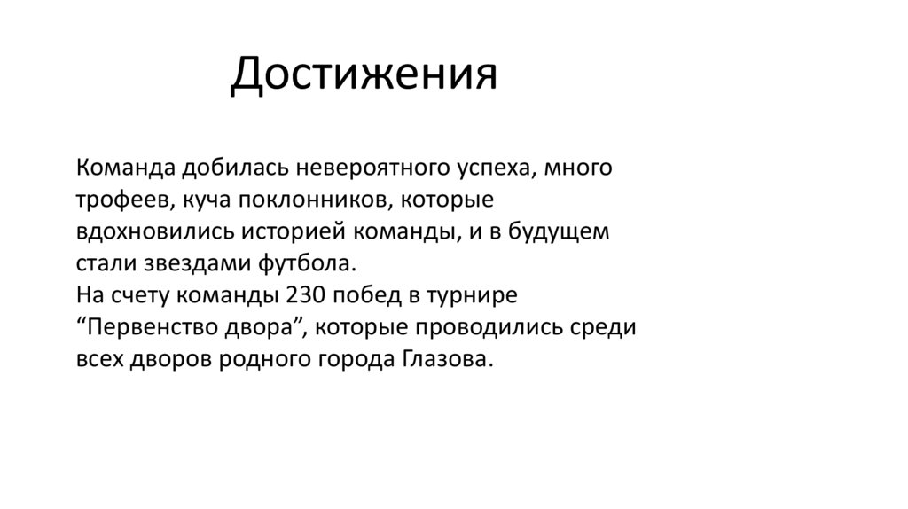 ДостиженияКоманда добилась невероятного успеха, много