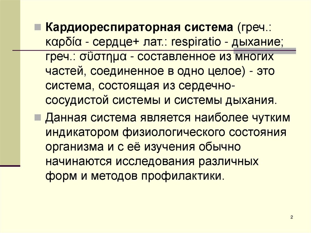 Кардиореспираторная система (греч.:καρδία - сердце+ лат.: respiratio - дыхание;