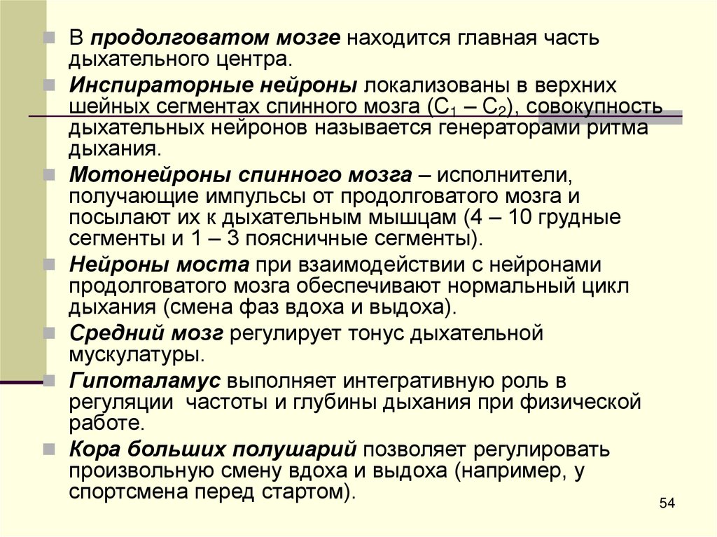 Механизмы регуляции дыхания52