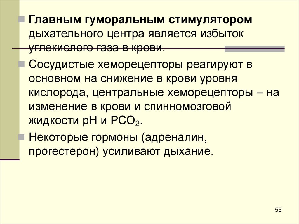кислорода, центральные хеморецепторы – на