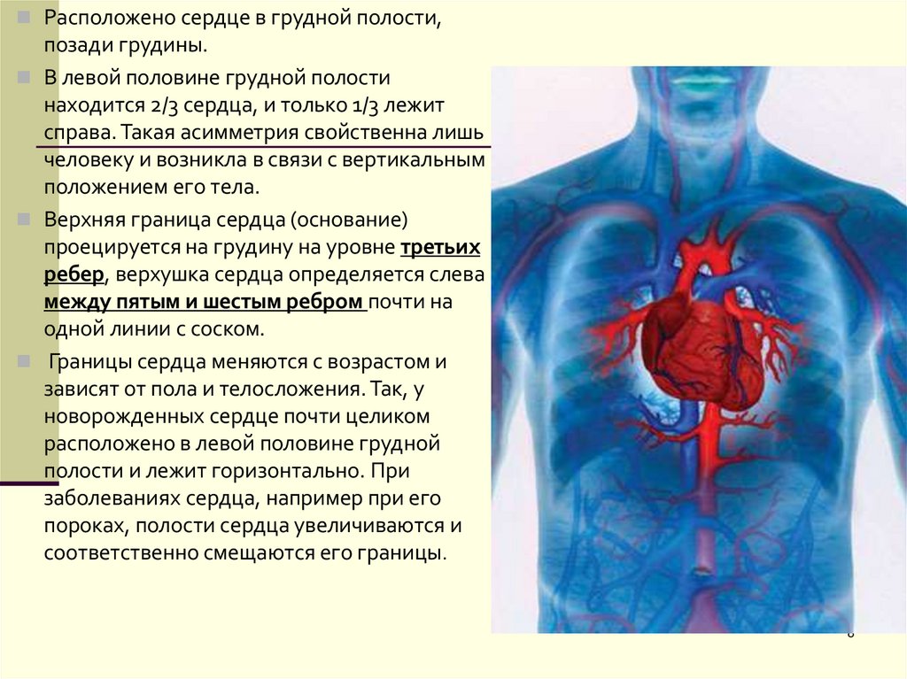 находится 2/3 сердца, и только 1/3 лежит