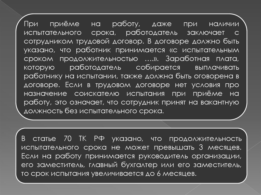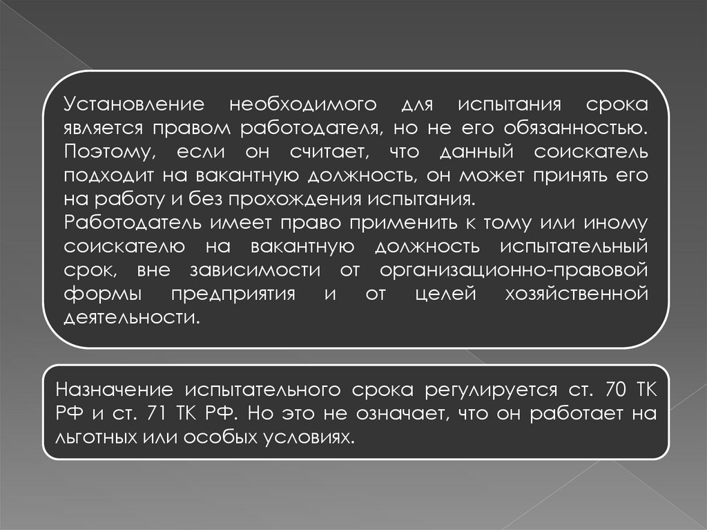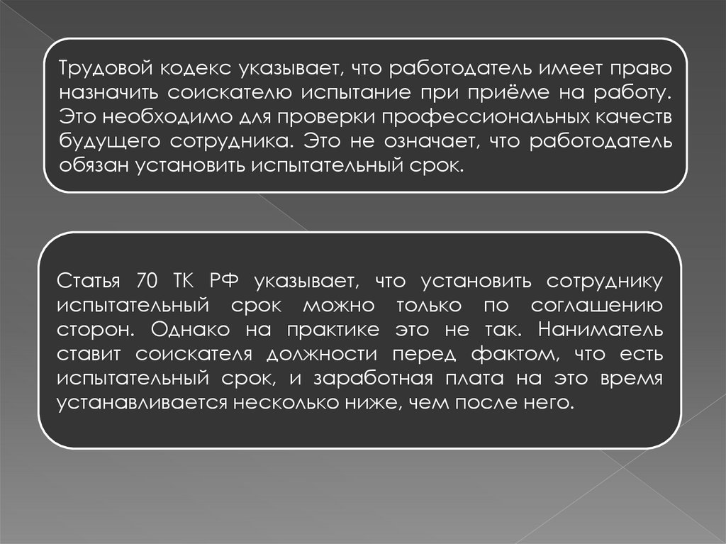Трудовой кодекс указывает, что работодатель имеет правоназначить соискателю испытание при приёме на работу.