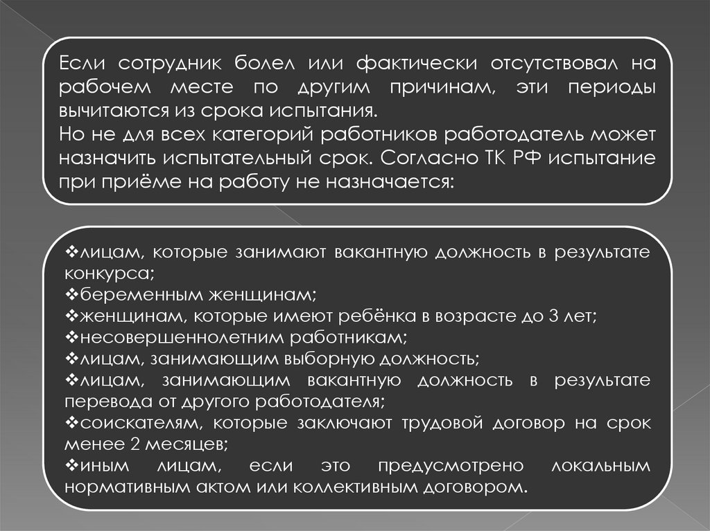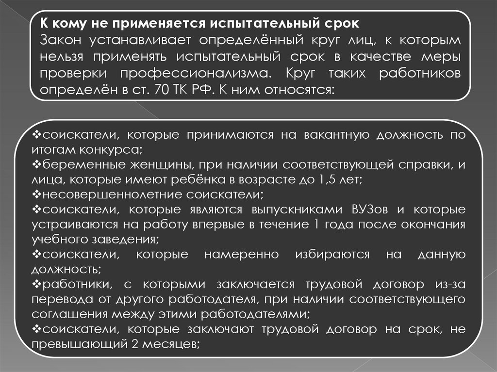 К кому не применяется испытательный срокЗакон устанавливает определённый круг лиц, к которым