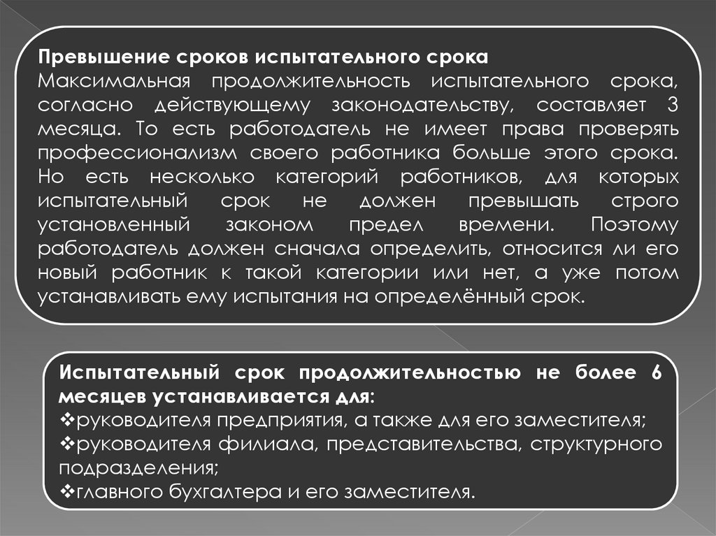 Превышение сроков испытательного срокаМаксимальная продолжительность испытательного срока,