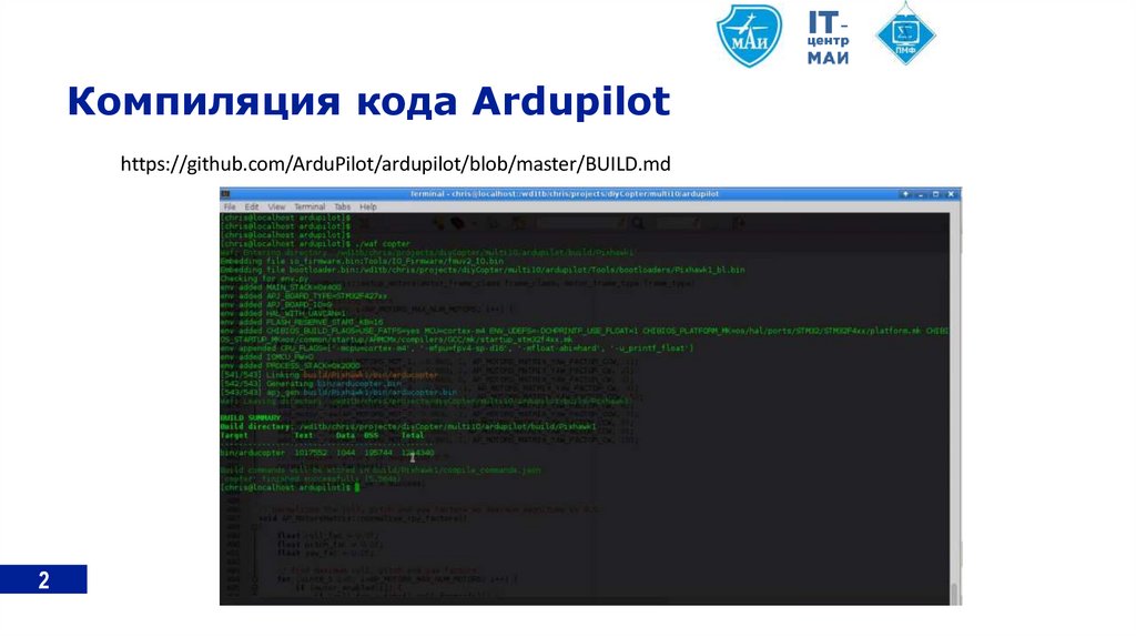Компиляция кода Ardupilothttps://github.com/ArduPilot/ardupilot/blob/master/BUILD.md