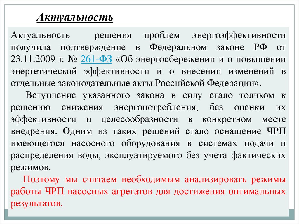 внедрения. Одним из таких решений стало оснащение ЧРП