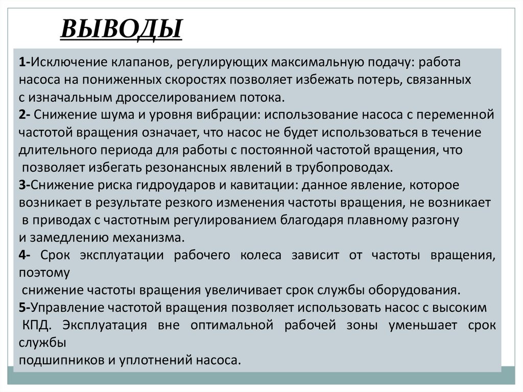 насоса на пониженных скоростях позволяет избежать потерь, связанных