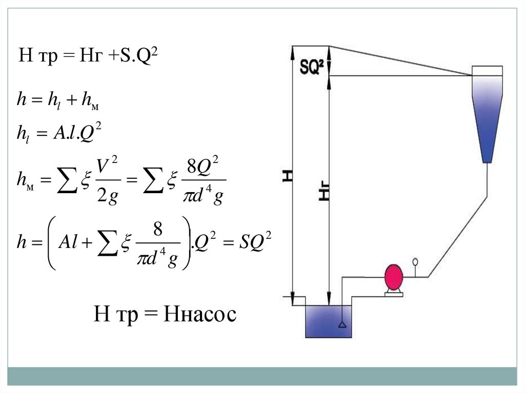 Н тр = Нг +S.Q2h hl hм
