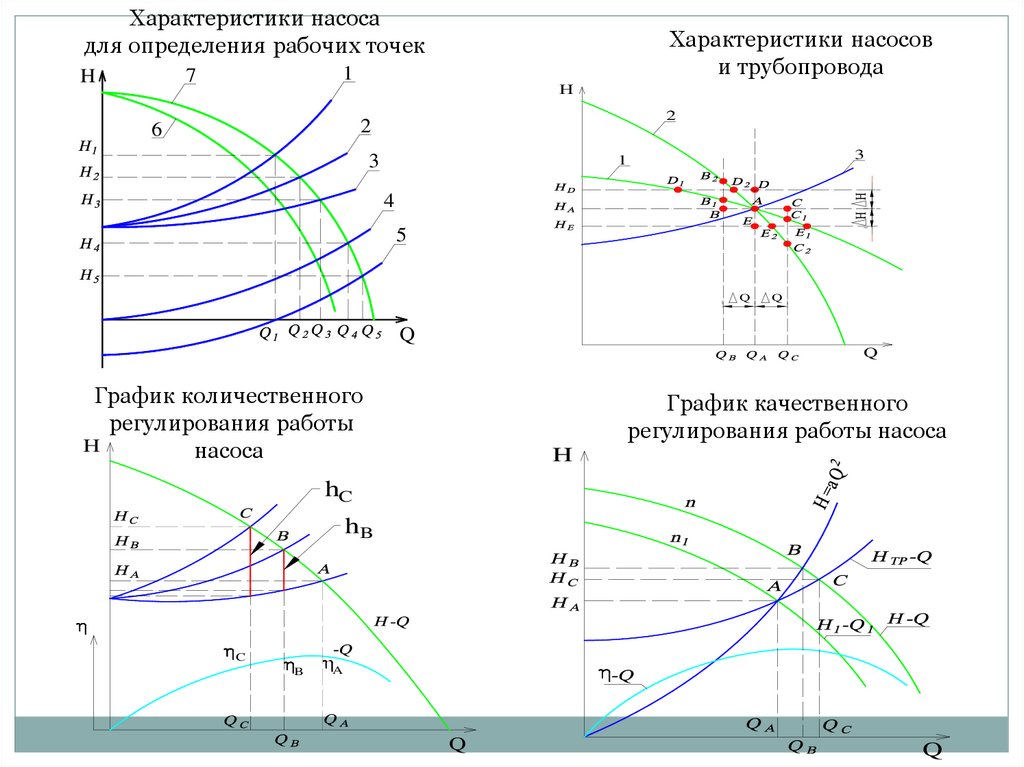 Характеристики насосадля определения рабочих точек