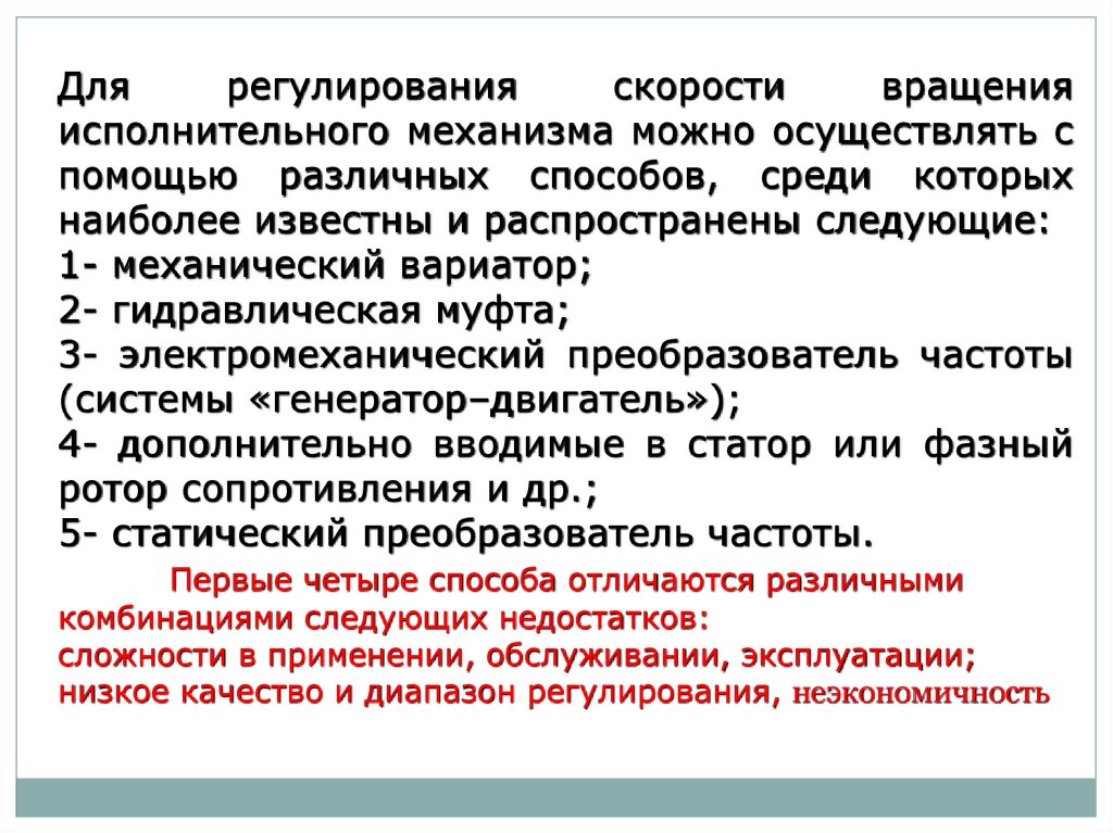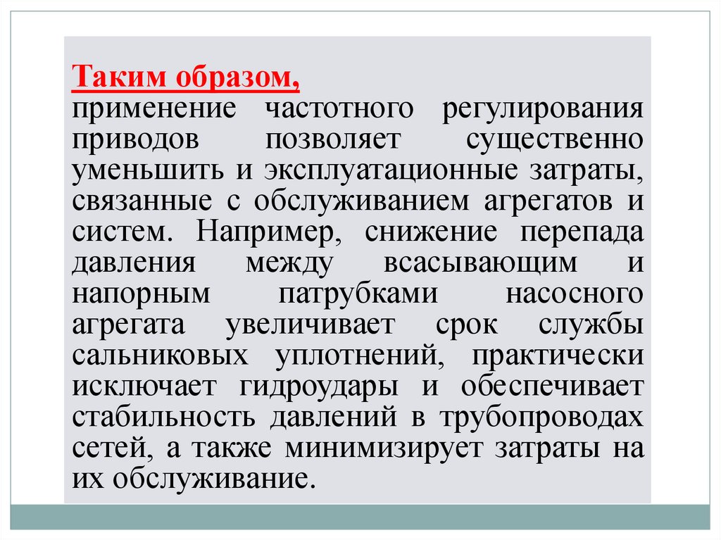 Кроме того, использование частотно-регулируемого электропривода для