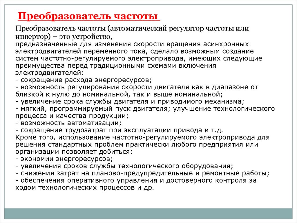 Преобразователь частотыПреобразователь частоты (автоматический регулятор частоты или