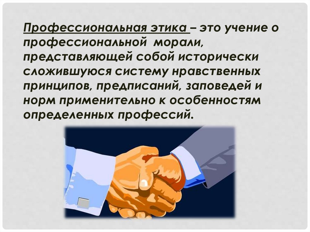 Профессиональная этика – это учение опрофессиональной морали,