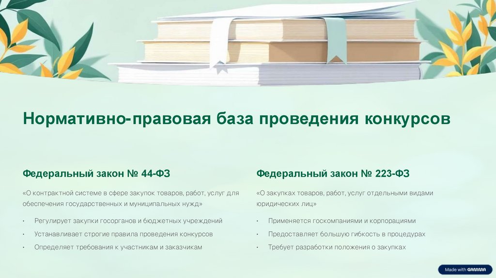 Нормативно-правовая база проведения конкурсовФедеральный закон № 44-ФЗ