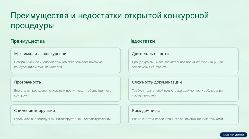 Преимущества и недостатки откры той конкурснойпроцед уры