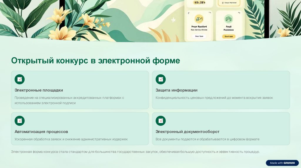 Электронная форма конкурса стала стандартом для большинства государственных закупок, обеспечивая большую доступность и эффективность процедур.