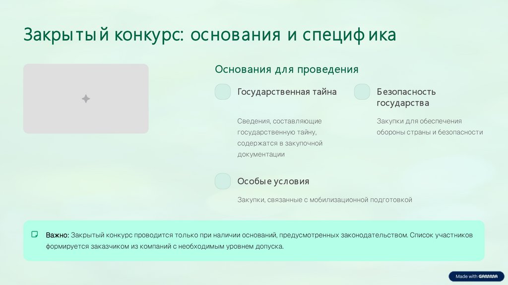 Важно: Закрытый конкурс проводится только при наличии оснований, предусмотренных законодательством. Список участников
