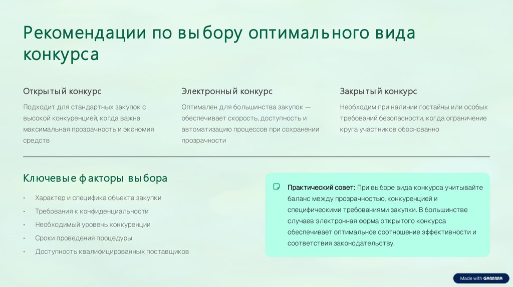 Рекомендации по вы бору оптимал ь ного видаконкурс а