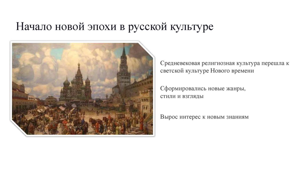 Начало новой эпохи в русской культуреСредневековая религиозная культура перешла к