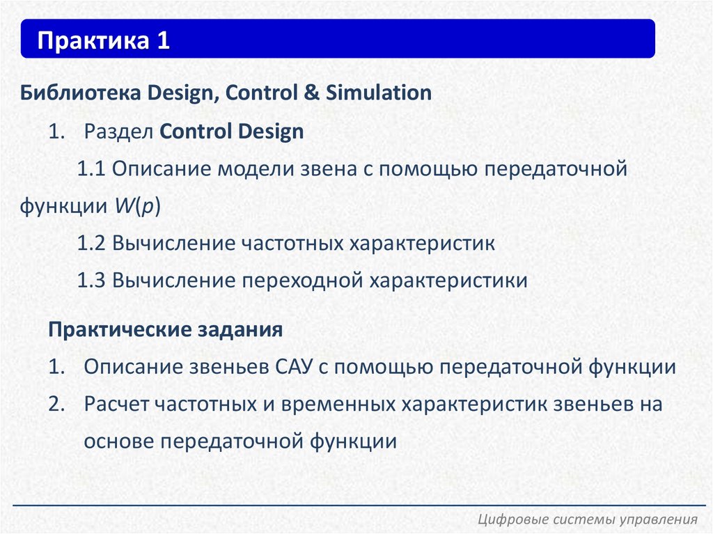 Практика 1Библиотека Design, Control & Simulation