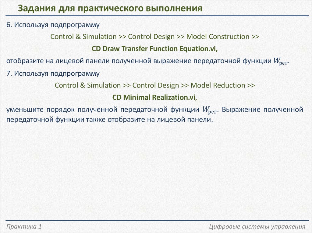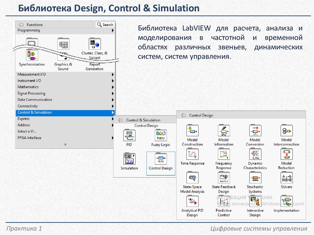 Библиотека Design, Control & SimulationБиблиотека LabVIEW для расчета, анализа и