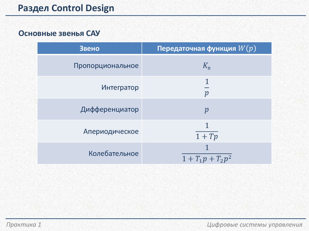 1. Раздел Control Design