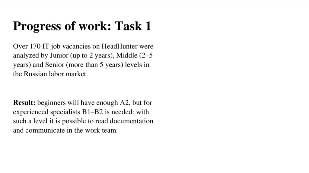Progress of work: Task 1Over 170 IT job vacancies on HeadHunter were