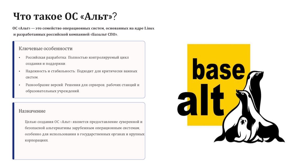 Что такое ОС «Альт»?ОС «Альт» — это семейство операционных систем, основанных на ядре Linux