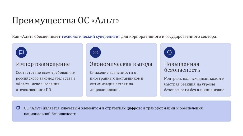 ОС «Альт» является ключевым элементом в стратегиях цифровой трансформации и обеспечения