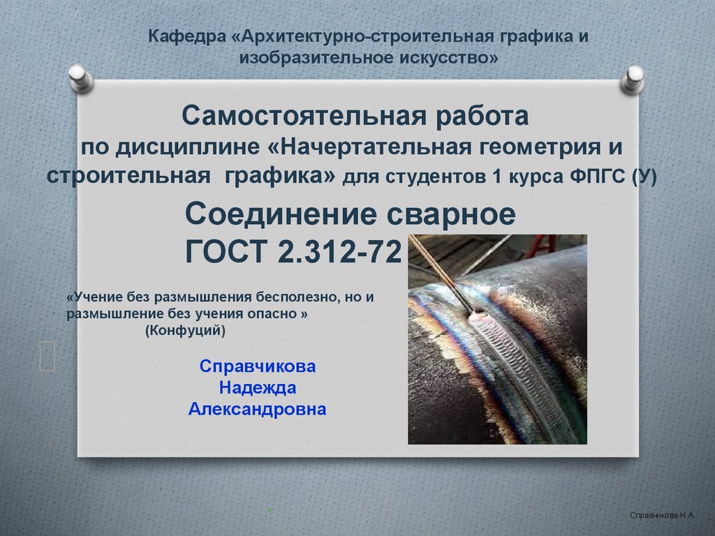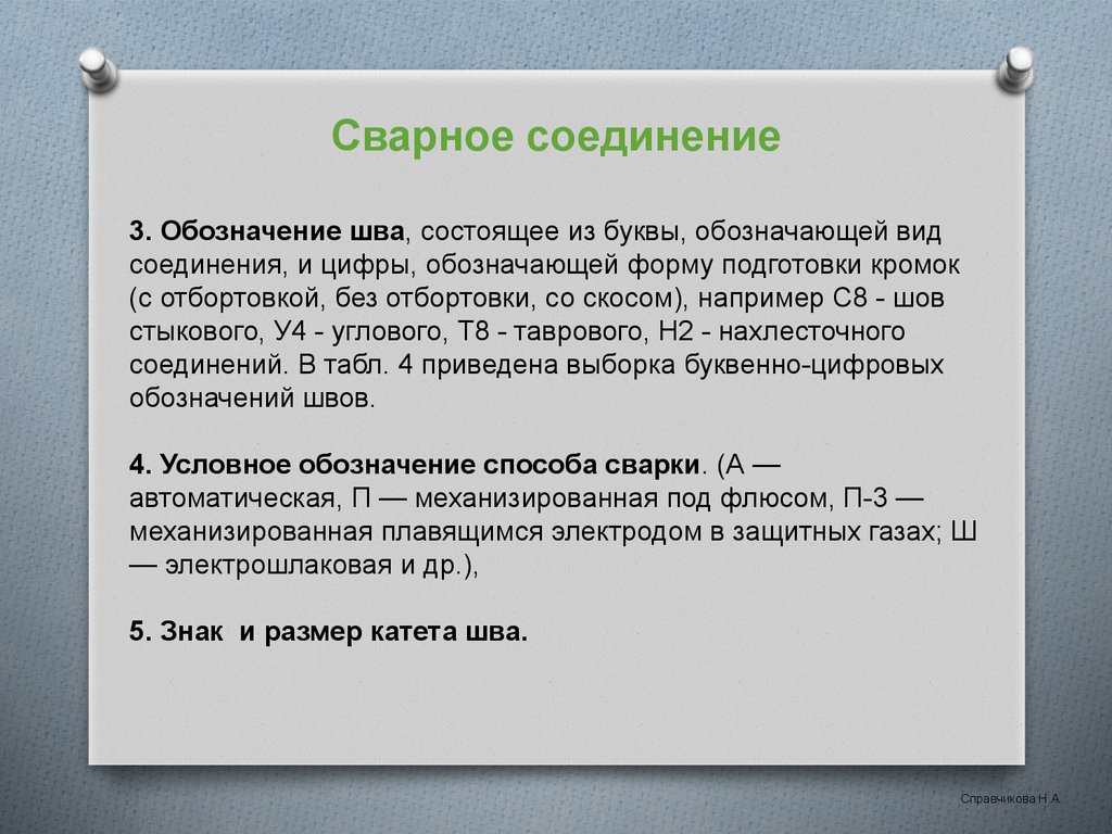 Сварное соединение3. Обозначение шва, состоящее из буквы, обозначающей вид