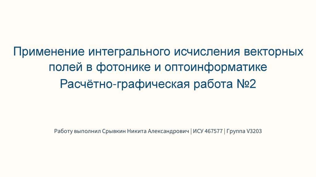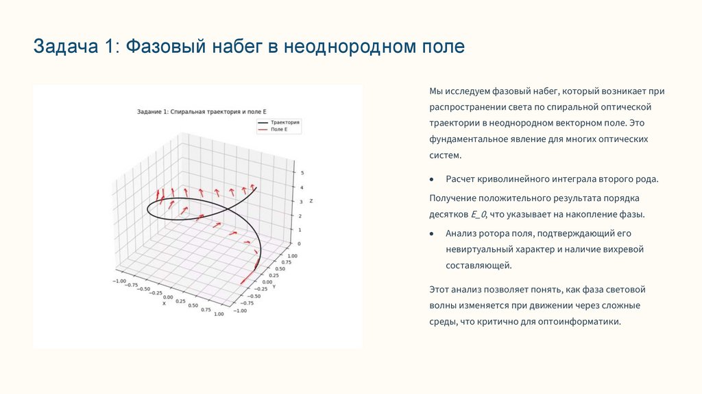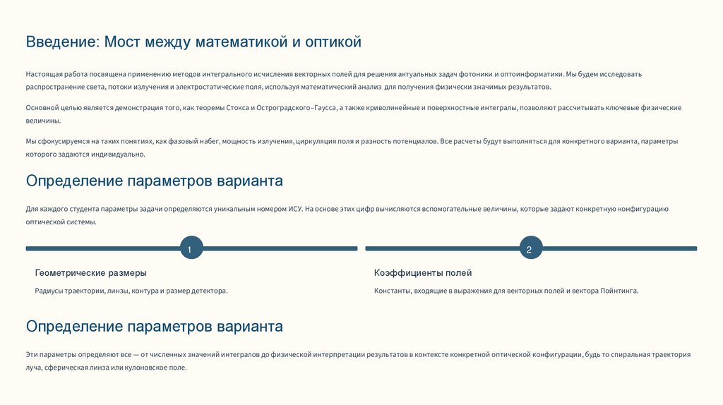 Введение: Мост между математикой и оптикойНастоящая работа посвящена применению методов интегрального исчисления векторных полей для решения актуальных задач фотоники и оптоинформатики. Мы будем исследовать