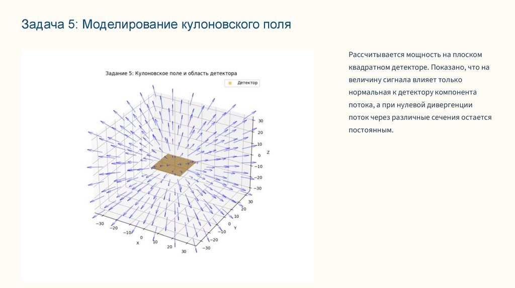 Задача 5: Моделирование кулоновского поляРассчитывается мощность на плоском