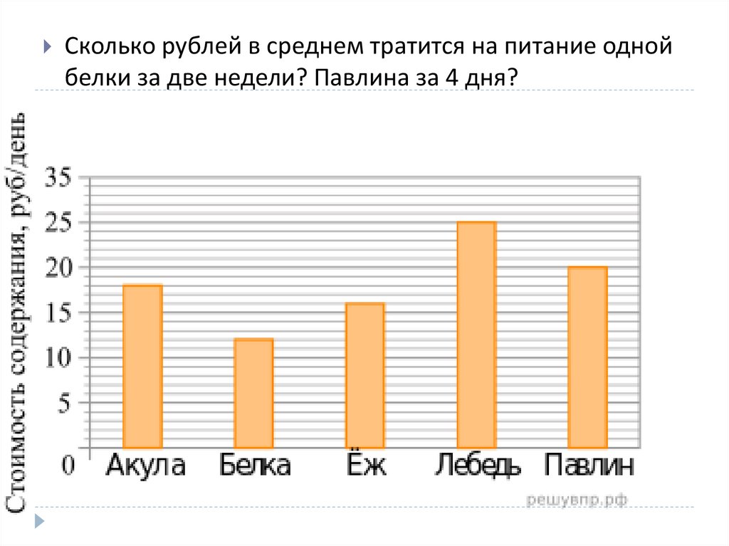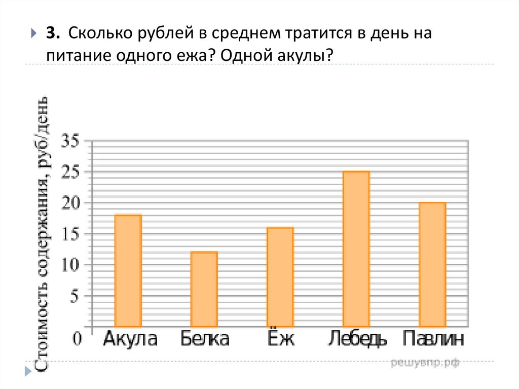 3. Сколько рублей в среднем тратится в день напитание одного ежа? Одной акулы?