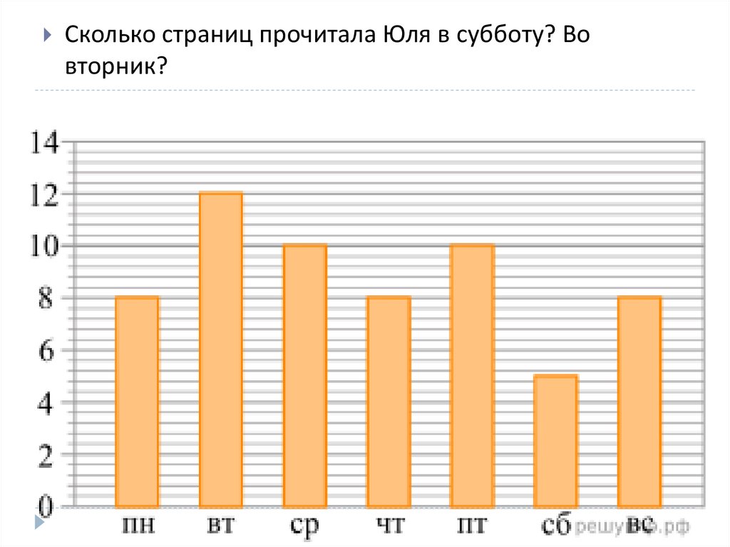 Сколько страниц прочитала Юля в субботу? Вовторник?