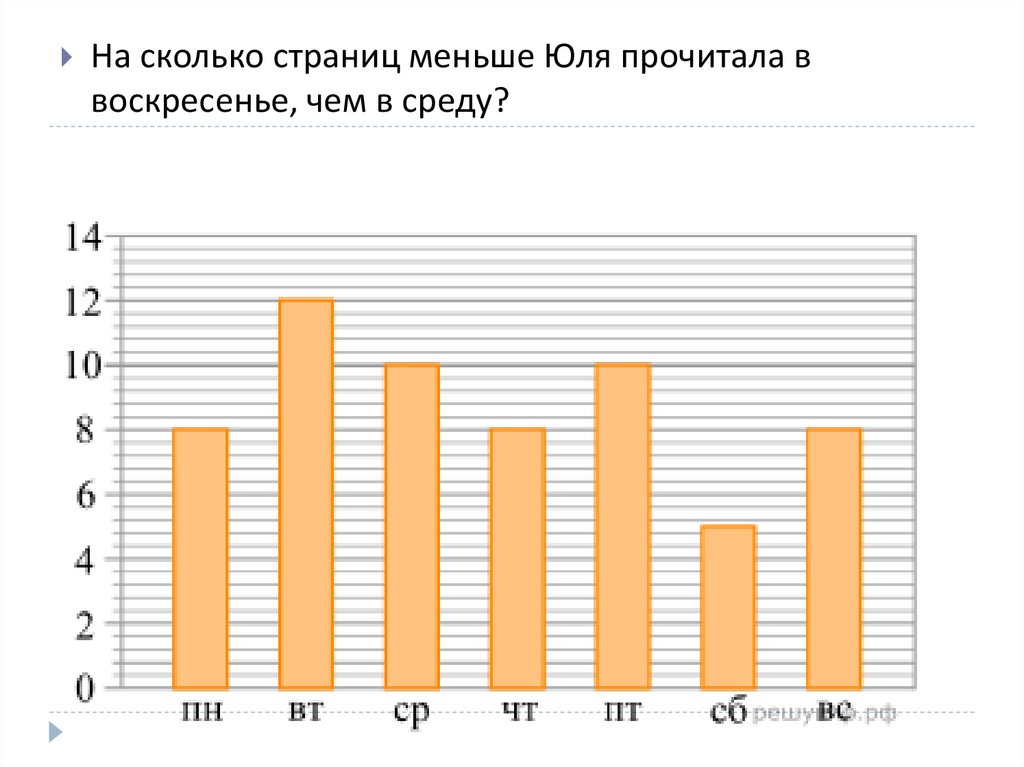 На сколько страниц меньше Юля прочитала ввоскресенье, чем в среду?