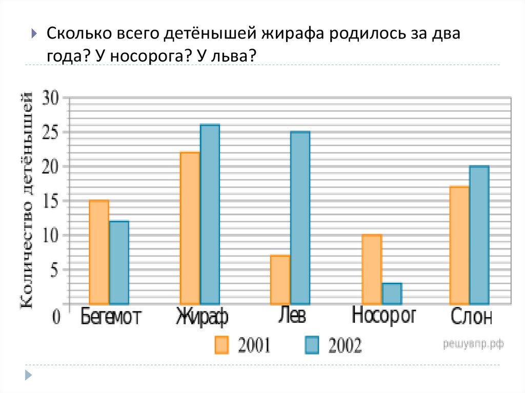 Сколько всего детёнышей жирафа родилось за двагода? У носорога? У льва?