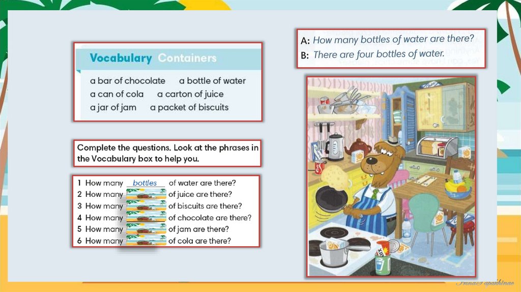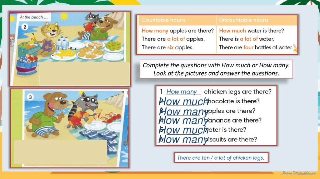 Complete the questions with How much or How many.Look at the pictures and answer the questions.