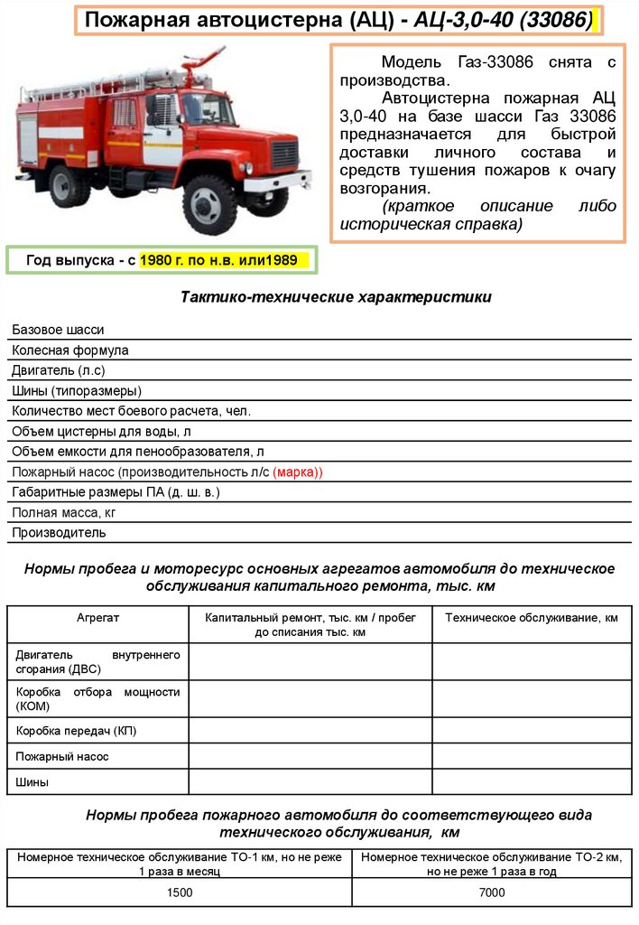 1. Пожарная автоцистерна (АЦ) - АЦ-3,0-40 (33086)