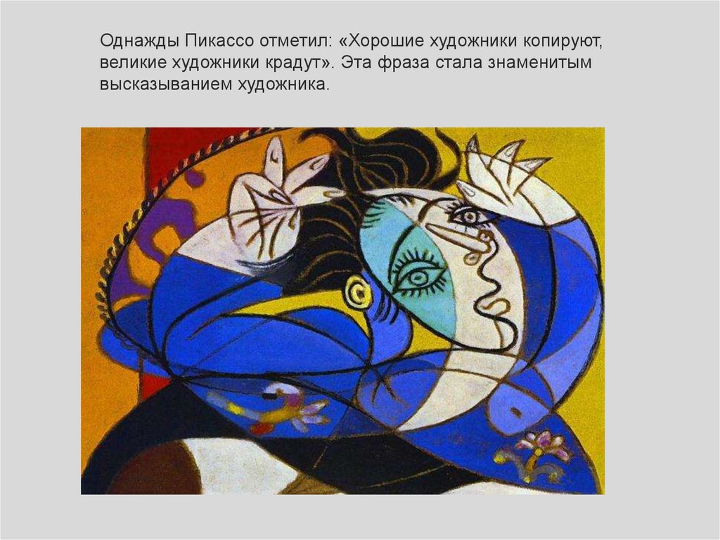 Однажды Пикассо отметил: «Хорошие художники копируют,великие художники крадут». Эта фраза стала знаменитым