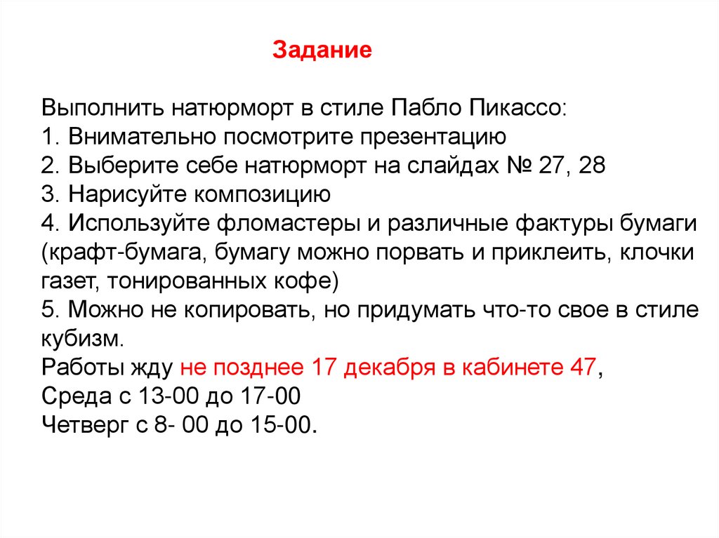 ЗаданиеВыполнить натюрморт в стиле Пабло Пикассо: