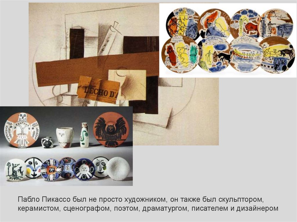 Пабло Пикассо был не просто художником, он также был скульптором,керамистом, сценографом, поэтом, драматургом, писателем и дизайнером