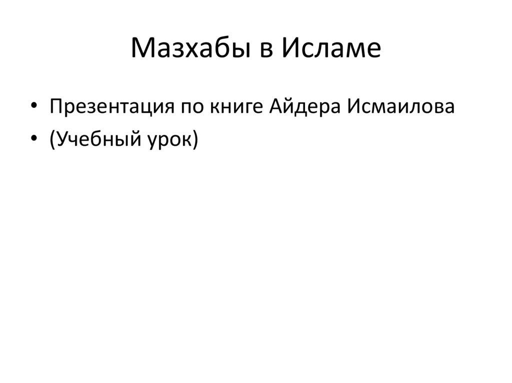 Мазхабы в Исламе• Презентация по книге Айдера Исмаилова