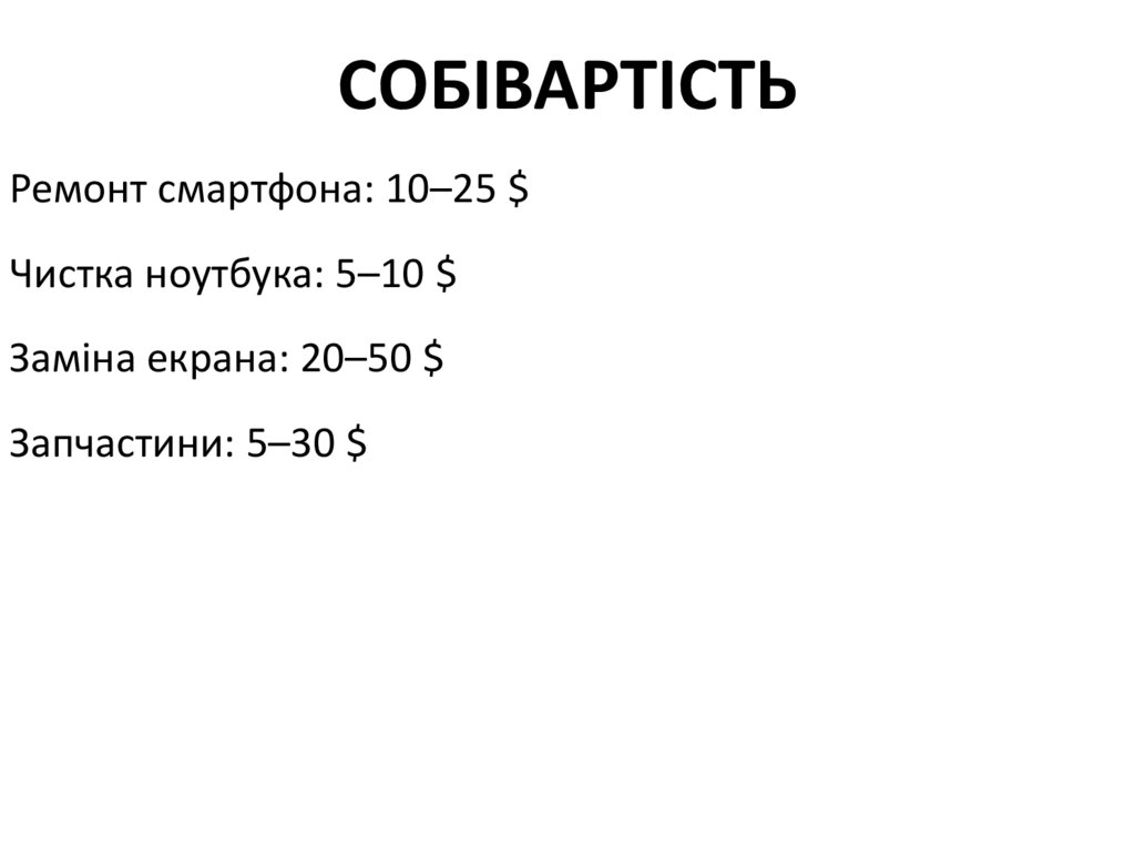СОБІВАРТІСТЬРемонт смартфона: 10–25 $