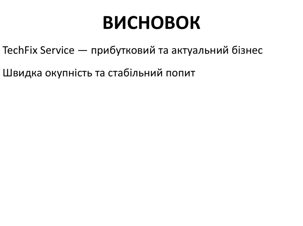 ВИСНОВОКTechFix Service — прибутковий та актуальний бізнес
