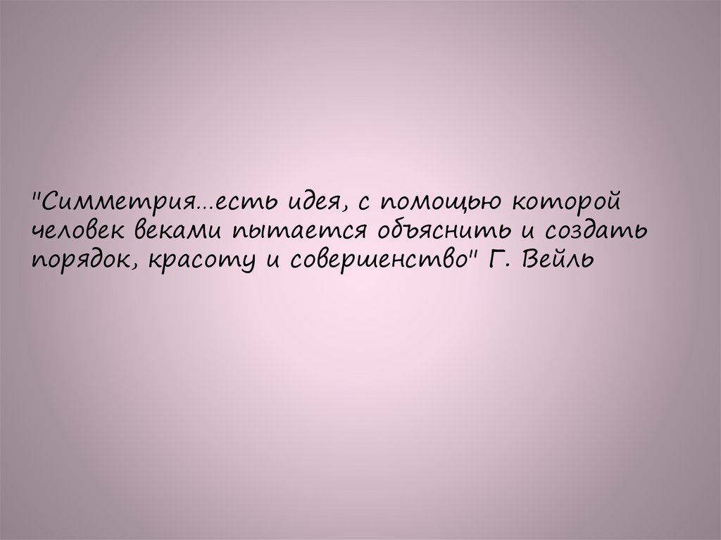 "Симметрия…есть идея, с помощью которойчеловек веками пытается объяснить и создать