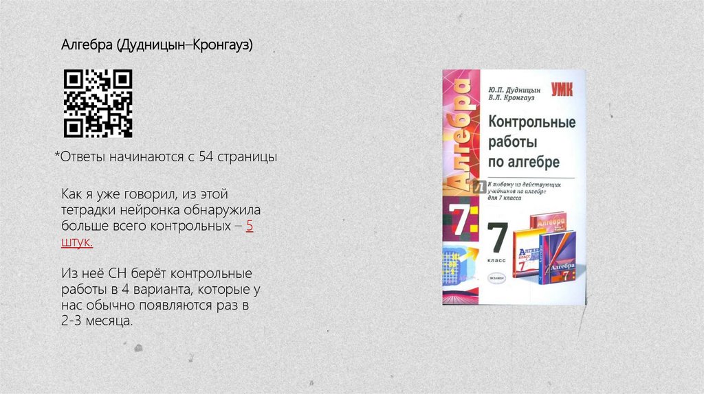 Алгебра (Дудницын–Кронгауз)*Ответы начинаются с 54 страницы