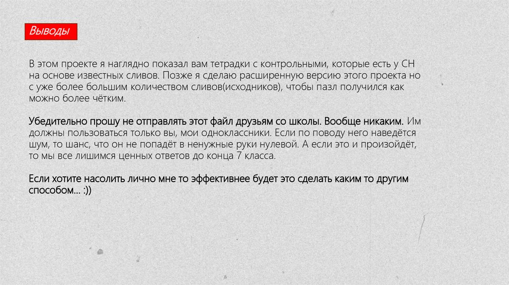 Убедительно прошу не отправлять этот файл друзьям со школы. Вообще никаким. Им