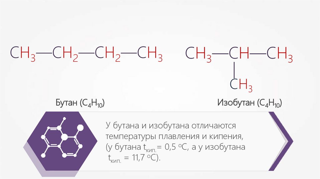 (у бутана tкип.= 0,5 oС, а у изобутана