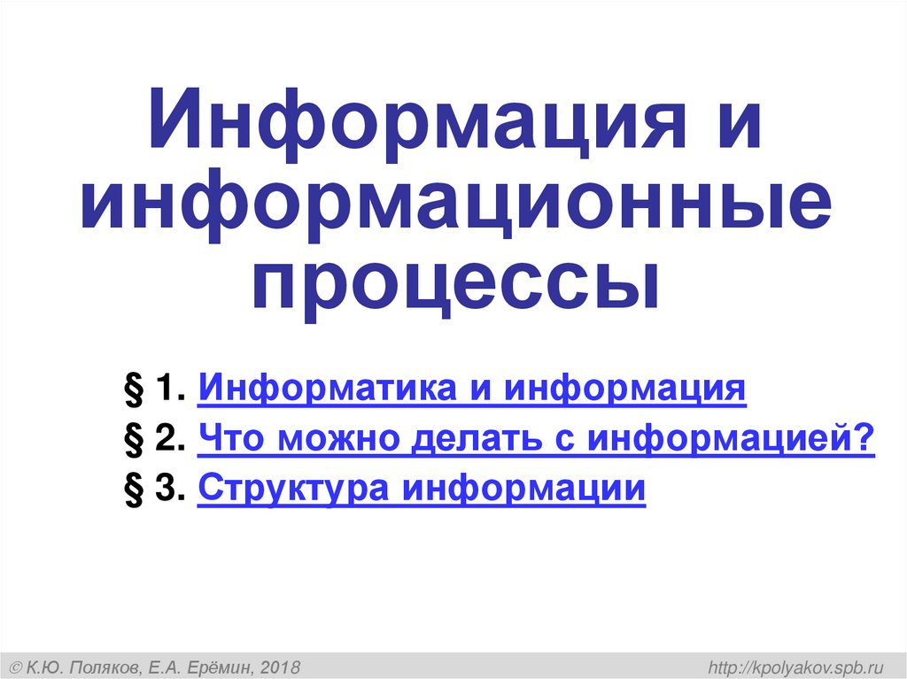 § 1. Информатика и информация§ 2. Что можно делать с информацией?